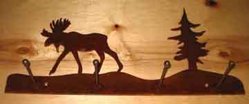 Rusted Elk and Pine * 4 hook coat rack * * 24" wide x 11" high * * $45.00 *