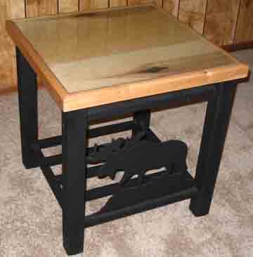 Black Matte Finish Steel End Table * Rustic maple wood top with glass insert* * Moose cut out on one side* *21 1/2" square x 22" high * * $275.00 *
