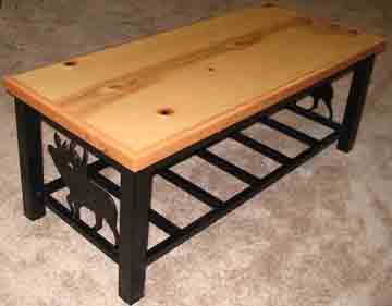 Black Gloss Finish Steel Coffee Table * Rustic maple wood top * *Elk cut out on each end * * 49" long x 21" wide x 19" high * * $375.00 *